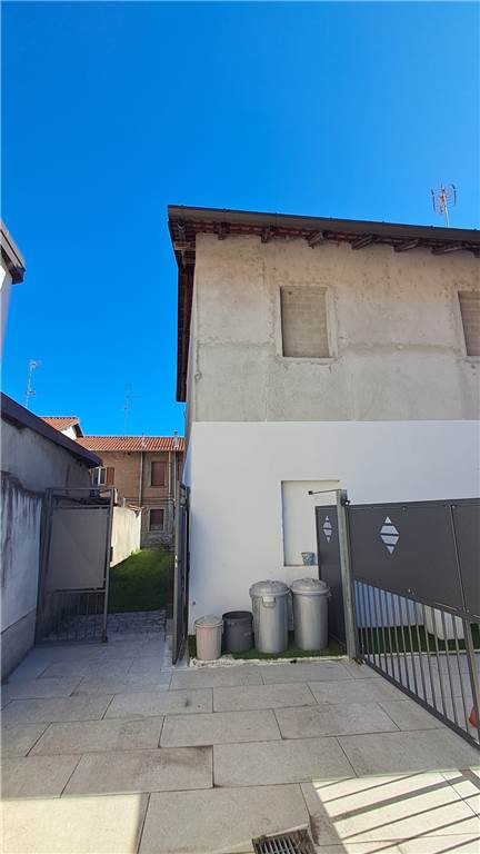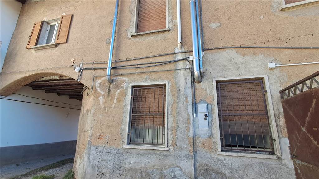 in centro paese in corte , porzione di casa di 3 locali con bagno disposta su 2 piani , piano terra sala cucina , scala interna che porta al primo piano con 2 camere e bagno 95 mq totali vicino rustico con box e sgombero piano terra 45 mq cascina sovrastante 45 mq e sottostante 12 mq di cantina , più terreno adiacente al rustico circa 50 mq .