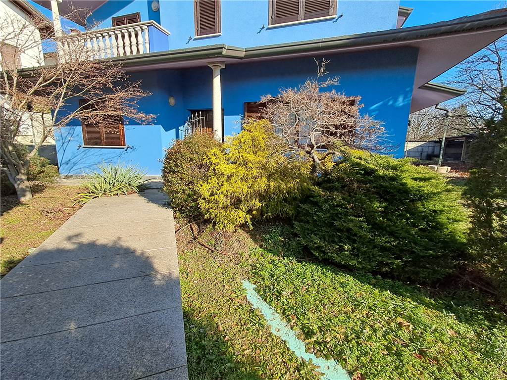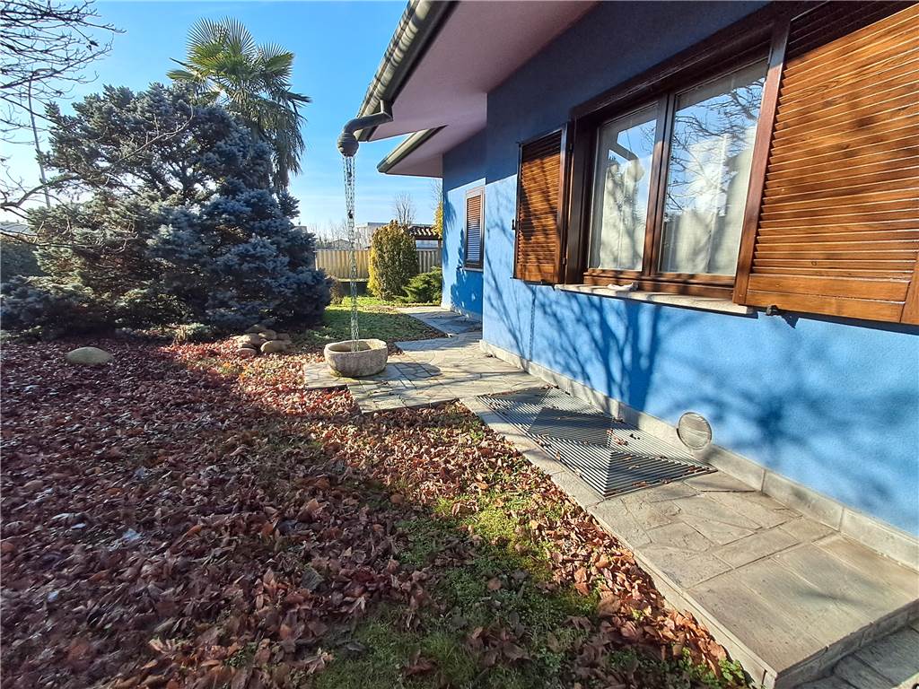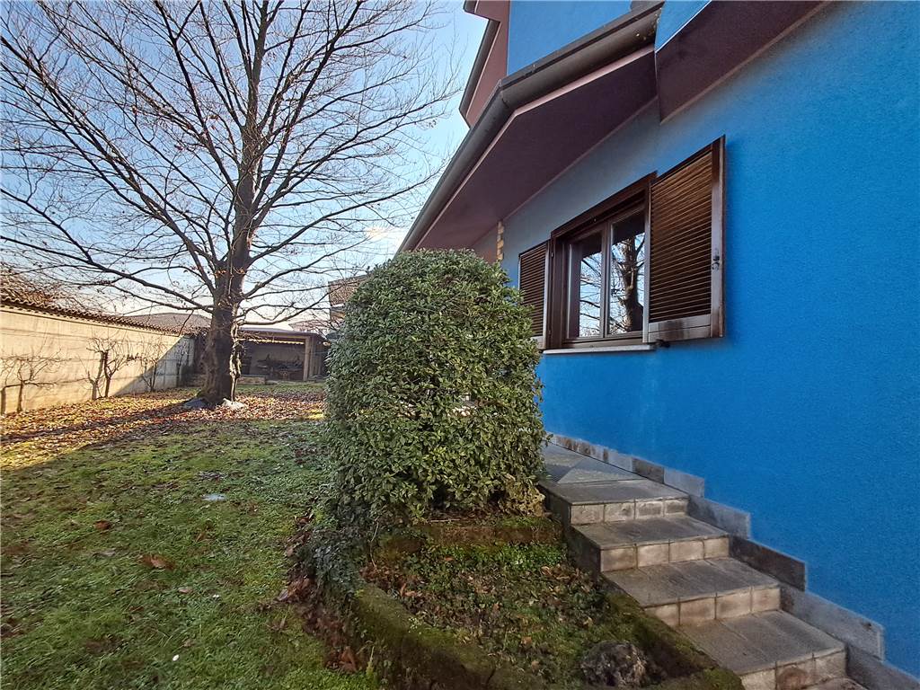 Villa singola del 2001 composta da PT 105 mq :salone doppio con camino, cucina ampia abitabile, che accede a porticato; bagno, locale camera o ufficio, scala interna con finiture di pregio che accede al 1° piano di 105 mq oltre terrazzino, 3 camere di cui 1 con camino in stile 800 e accesso terrazzino, 1 bagno con vasca e doccia, Bagno padronale scenografico, locale grande per armadiature e attrezzatura. Piano interrato mq 111 di cui taverna con camino e locale hobby lavanderia, bagno e locale caldaia, di recente cambiata. Grande box in larghezza per 2 auto , gazebo nel giardino piantumato 613 mq oltre la metratura delle parti edificate. Ulteriori informazioni presso i nostri uffici.